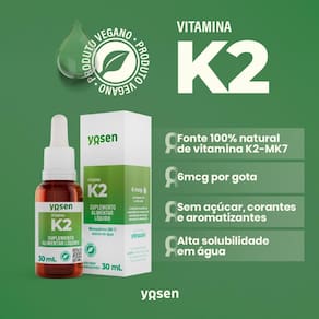 Ingredientes Vitamina K2 Menaquinona-7 . Agente de massa: Glicerol, água. Emulsificante: lecitina de soja. Antioxidante: DL-alfa-tocoferol.