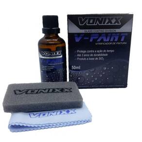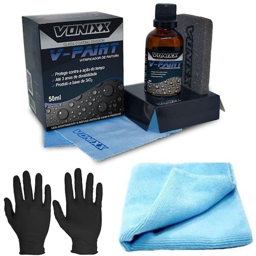 Super kit desenvolvido para uma vitrificação automotiva eficaz e seguraProduto formulado para revestir a pintura, protegendo-a contra a ação do tempo e deixando um brilho de alta profundidade.Desenvolvido com moléculas de silício reativo, que muda da forma líquida para a sólida após o tempo de cura.Depois de aplicado, inicia o processo de reação química com o oxigênio presente na atmosfera, e o produto começa a solidificar na pintura, formando uma barreira nano tecnológica de alta resistência e com durabilidade de até 3 anos.V-Paint tem propriedade hidrorepelente, que facilita a limpeza a cada lavagem.O produto deixa um nano revestimento com espessura que varia de 200 a 400 nanômetros. Esse nano filme minimiza efeitos nocivos como: seivas de árvores, excrementos de pássaros, ação dos raios solares, maresia, chuva ácida dentre outros.Ajuda também na diminuição dos micros riscos causados por lavagens mal executadas, evitando o desgaste precoce da pintura.O tempo de cura parcial é de 12 horas, e a cura total ocorrerá em até 6 dias. Durante esse período, os revestimentos a base de sílica têm uma ligeira tendência a formar marcas de água compostas por sais de cálcio e magnésio quando expostos a chuvas ou lama. Para minimizar esse efeito, recomenda-se a aplicação de SiO2-PRO Vonixx 4 dias após a aplicação do V-Paint.Recomenda-se utilizar SiO2-PRO Vonixx a cada 30 ou 45 dias para ajudar na manutenção de brilho, deixar a pintura com toque aveludado e aumentar a vida útil do vitrificadoro SIO2- PRO é o produto perfeito para fazer a manutenção do vitrificador V paint., Os vitrificadores a base de silício protegem a pintura do carro por muito tempo e tem várias características espetaculares, porém, o produto tem o mesmo toque de um vidro, ou seja, a superfície não fica com o toque aveludado como o deixado pelas ceras e selantes. Em virtude disso, desenvolvemos SiO2-PRO, um produto exclusivo, desenvolvido especialmente para manutenção de superfícies tratadas por vitrificadores. O produto poderá ser utilizado a cada 30 ou 45 dias na manutenção de superfícies que foram tratadas com V-Plastic (plásticos), V-light (faróis e lanternas) e V-Paint (pintura). Sua formulação balanceada, contém silanos e siloxanos de cadeia longa, que são polímeros derivados do elemento químico silício. Essa composição, promove uma incrível hidrorepelencia, e melhora significativamente o acabamento dessas superfícies. O produto deixa um toque aveludado e reduz consideravelmente o coeficiente de atrito, diminuindo as chances de riscos nessas superfícies, além de prolongar a vida útil das superfícies vitrificadas. Usando o V paint e o SiO2 em conjunto de forma frequente a vitrificação terá uma longa duração, até mais que 3 anos. O kit completo acompanha:- Vitrificador V paint 50 ml- Sio2 500 ml- luva nitrilica especial- flanela de microfibra- espuma aplicadora- pequena flanela para revestir a espuma