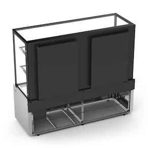 - Temperatura: Ambiente; - Revestimento interno e saia em aço inox; - Câmara em vidro temperado; - Iluminação LED; - Portas traseiras de bater em aço galvanizado pintado; - Prateleiras em vidro temperado; - Pés termoplásticos com regulagem de altura.