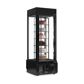 Vitrine Refrigerada Giratória Para Bolos Gelopar GEVG-075 PR-220v, da Gelopar é simplesmente fantástico quando o assunto é expor seus bolos da maneira mais chamativa e bonita possível. A Gelopar reconhece que os clientes das doceiras e confeitarias estão cada vez mais exigentes, logo criou este produto para agradá-los.Com capacidade para 6 bolos, O GEVG-075 possui 6 prateleiras de vidro 515 mm temperado com capacidade para 15kg cada, além de iluminação em LED e controlador eletrônico digital de temperatura. O acabamento interno é em aço Inox 304 na base e laterais e Aço Inox 430 no teto, o acabamento externo é em vidro com detalhes estruturais em aço pré-pintado Preto. Os vidros são duplos e possuem gás argônio que reduz a condensação entre os vidros.. Sistema giratório com parada na abertura, que promove maior destaque na exposição.
