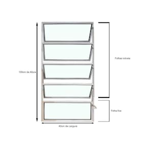 Especificações Técnicas Marca: Brecorimo Modelo: Basculante Linha Esmeralda Cor: Branco Material: Alumínio Vidro: Liso Verde 3mm Uma Seção Medidas da peça: 100 cm x 40 cm x 3 cm altura x largura x espessura