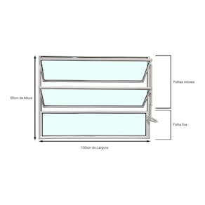 Os vitrôs basculantes são uma opção prática e versátil para quem busca uma solução eficiente em aberturas de janelas.Especificações TécnicasMarca: BrecorimoModelo: BasculanteLinha EsmeraldaCor: BrancoMaterial: AlumínioVidro: Liso Verde 3mmUma SeçãoMedidas da peça: 60 cm x 100 cm x 3 cm altura x largura x espessura Recomendação da instalação:- Instale com a embalagem.- Use o prumo e o nível para alinhamento.- Para limpeza use apenas água.