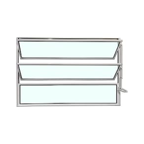 Especificações Técnicas Marca: Brecorimo Modelo: Basculante Linha Esmeralda Cor: Branco Material: Alumínio Vidro: Liso Verde 3mm Uma Seção Medidas da peça: 60 cm x 100 cm x 3 cm altura x largura x espessura