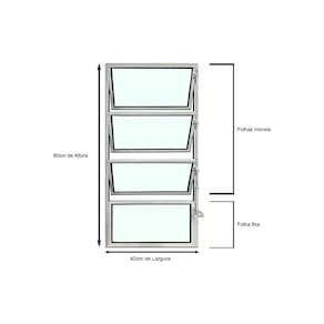 Especificações Técnicas Marca: Brecorimo Modelo: Basculante Linha Esmeralda Cor: Branco Material: Alumínio Vidro: Liso Verde 3mm Uma Seção Medidas da peça: 80 cm x 40 cm x 3 cm altura x largura x espessura
