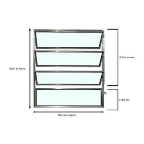 ?? CARACTERÍSTICAS Modelo: Vitro Basculante 1 Seção Linha: Esmeralda Material: Alumínio Cor: Brilhante Vidro: Liso 3 mm Medidas: 80 cm (A) x 80 cm (L) x 3 cm (C) Garantia: 1 ano Produto pronto para instalação