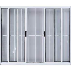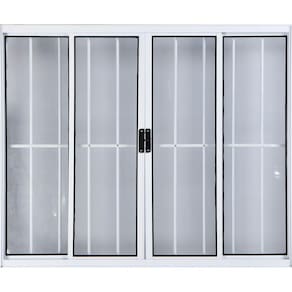 Contém 4 folhas (2 Folhas Laterais Fixas e 2 Folhas Centrais Móveis).