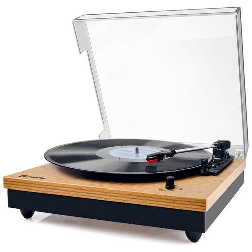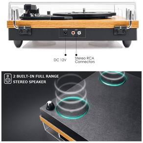 O vintage está de volta ao palco sólida construção em madeira com design retro, elegante e clássico Toca discos All In One 3 velocidades 33, 45 e 78 RPM para discos de vinil de 17cm , adaptador de 45 RPM incluído 2 alto falantes estéreo de faixa total integrados produzam um som nítido e quente com clareza impressionante Projeto anti ressonância exclusivo por meio de 3 plugues elásticos plantados sob o prato para minimizar a vibração A função Bluetooth permite a reprodução sem fio a partir de um smartphone e tablet Jack RCA para conectar outro alto falante A tampa protetora contra poeira removível com dobradiças protege seus discos de vinil quando não estão em uso A chave liga , desliga de parada automática permite a parada automática quando o registro termina de tocar