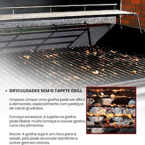 O tapete também evita aquela fumaça intensa quando as gorduras das carnes vão caindo sobre a brasa.
