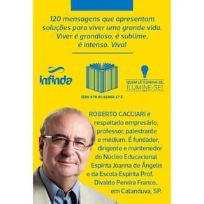 É preciso saber viver com sabedoria, com amor. Sob a inspiração de Espíritos Superiores, Roberto Cacciari elaborou esta obra com 120 mensagens objetivas, concisas e profundas que apresentam soluções para o bem viver. Esta edição especial de lançamento acompanha bela sacolinha exclusiva, tornando o livro também uma excelente opção para presente. Viver é grandioso, é sublime, é intenso. Viva!