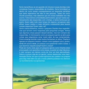 Seria maravilhoso se em questão de minutos nossas dúvidas mais complexas fossem respondidas de imediato. Seria formidável se dentro de curto tempo conseguíssemos as respostas perfeitas que tanto esperamos da vida ou das pessoas. Talvez em outro mundo aconteça, mas sabemos que em nossa realidade isso não ocorre. Todos temos curiosidades particulares, que por vezes cautelosamente são esquecidas com o tempo, e talvez tenha que ser assim. Quem sabe todo esse tempo de espera e progresso seja, a?nal, nosso melhor e mais e?ciente combustível para buscar nossas respostas? Quem sabe, né? Dentro dessa dinâmica, vemos o pequeno Charles viver experiências que servem como respostas para perguntas antigas. Vemos que algumas coisas passam despercebidas, mas nem sempre são esquecidas. É interessante como um pequeno garoto se abre para coisas que julgaríamos estar muito além de sua compreensão. Como enxerga sentido onde muitos fechariam os olhos. Charles é apenas um pequeno menino, comum como qualquer outro, porém, ainda em pouca idade, já começa a se questionar sobre coisas: o que fazemos naquela igreja? Quem é Jesus? Pode ser muito cedo para um pequeno garoto como Charles estar preocupado com questões como essas, ou pode ser algo fabuloso, e nem sempre nos damos conta de tirar um belo aprendizado. Sobre a comum vida de um garoto, vemos desenrolar uma manifestação Divina, em que o jovem aprimora seu caráter e se prepara para algo mais além do que o nosso planeta pudesse nos oferecer ou humildemente nos apresentar.