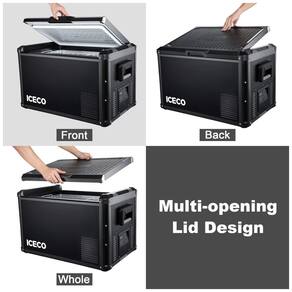 Tampa multidirecional Aço resistente, perfeito para a vida de seu RV. A tampa com abertura de duas vias é conveniente para você tirar alimentos da geladeira. Fácil de abrir a geladeira mesmo no porta malas do carro. Design atualizado Equipado com orifício de drenagem, defletor à prova dágua, luzes LED e alças de ângulo ajustável removíveis. O pacote também vem com cesta removível, alça de reposição, protetores de canto e bujão de drenagem. A base antiderrapante pode fixar melhor o refrigerador no caminhão. Plugues para portas DC multiuso 12V 24V com ambos os lados para uso fácil de bateria portátil e carro. Porta CA embutida 110 240 V para uso doméstico. Duas saídas USB projetadas para carregar dispositivos móveis disponível apenas quando conectado com alimentação DC. Compressor SECOP Desempenho de resfriamento poderoso de 0 F a 50 F 18 10 . Modo MAX para resfriamento rápido e modo ECO para economia de energia. A tecnologia de inclinação superior possibilita um trabalho estável mesmo abaixo de 40 Marca: Não Informado