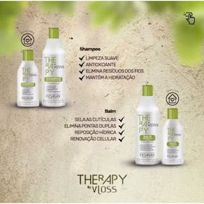 Modo de uso: Aplique o Shampoo Therapy sobre os cabelos molhados. Massageie delicadamnte até formar espumas e enxágue bem, Repita a opração se necessário.