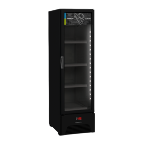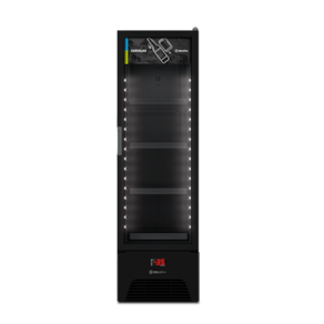 A linha All Black possui layout premium, com o gabinete e acabamento externo todos em preto. Suas características geram maior destaque aos produtos expostos e ao PDV, além de convidar o consumidor a interagir com o refrigerador pelo seu aspecto inovador e design friendly.