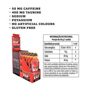 VO2 ENERGY GEL X-CAFFEINE é composto por um blend de carboidratos, que amplia a absorção energética, e pelos neuro estimulantes cafeína e taurina, que ajudam a reduzir a fadiga durante treinos e competições. A fórmula traz ainda sódio e potássio, fundamentais para repor os eletrólitos perdidos com o suor, ajudando a manter a hidratação.