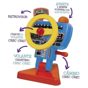 Volante Bi Bi Fom Fom - Elka Volante de brinquedo infantil fom fom buzina elka resistente O Volante Fom Fom da Elka chegou para fazer a diversão das crianças! É um super volante para brincar e soltar a imaginação! Suas cores são lindas e vibrantes, a buzina é bem fofinha e faz um barulhinho de apito quando apertada, além disso o volante é giratório e possui uma chavinha que com som de Crec Crec, assim como a marcha. E para deixar a brincadeira ainda mais legal o volante vem com retrovisor, marcha que faz barulho quando troca, buzina e 5 atividades para elas brincarem. Os pequenos podem soltar a imaginação e se divertirem. Código: 095790 Referência do fabricante: 1181 Certificado Inmetro: CE- 002046/2021 Idade Recomendada: A partir de 12 meses Dimensões aprox. da embalagem em cm: 22x27x27 Peso liq. Aproximado do produto na embalagem: 548g Conteúdo da Embalagem: 01 Volante Composição/material: Plástico Garantia: 90 dias contra defeitos de fabricação pelo fabricante Imagens meramente ilustrativas. As cores e tonalidades podem variar. Gênero - Meninos Idade - 12 Meses 18 Meses 2 Anos 3 Anos 4 Anos Características - Sem Luz Com Som Brinquedos - Atividades Instrumentos Musicais Ean: 7896448111810