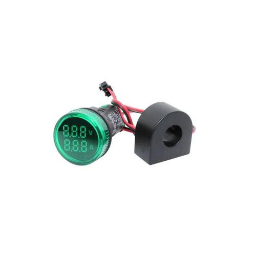 Voltímetro e amperímetro digital de 3 dígitos para furo de montagem 22mm. Mede tensões desde 50 até 265VCA 50/60Hz e corrente de até 100A. Transformador de corrente incluso.Tensão de Alimentação: 50 - 265VCAFaixas de Medição:- Tensão: 50 - 265VCA / 50/60Hz- Corrente: 0.1 - 99.9acor: VerdeAcessório: Transformador de corrente incluso.Dimensões: 29,5x49mmREF: VA20-2GCOD. DEAK: 12828
