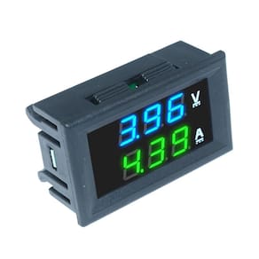 - Cor do display: azul (voltagem), vermelho (amperagem)