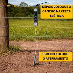 É muito simples: basta encostar o gancho no fio da cerca e a haste metálica (aterramento) no solo. O ponteiro indicará imediatamente a voltagem (em kV - kilovolts) no visor analógico.