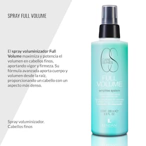 - COMO USAR: Em cabelos recém-lavados e úmidos, borrife Full Volume Spray em toda a área da raiz. Distribua o produto com uma massagem suave na ponta dos dedos, não enxágue e continue modelando normalmente.