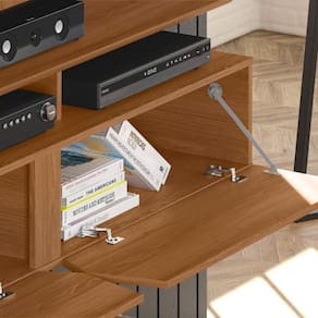 Praticidade: Nichos e prateleiras para organizar eletrônicos e decoração.