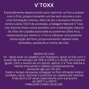 A V'Toxx foi especialmente desenvolvida com a tecnologia avançada Nano Blend, que facilita a introdução de nutrientes na fibra. Conta também com os inovadores e exclusivos sistemas Colagenoplastia e Amino Lisina Tech que permitem uma transformação segura, protegendo a fibra capilar, controlando a elasticidade. A adição de óleo de copaíba e óleo de inca em sua fórmula, evita perdas e danos durante o processo de redução de volume, proporcionando brilho, controle de frizz, selamento das cutículas e um efeito disciplinado. Disponível na versão branca, para todos os tipos de cabelo, e matizada especialmente para loiras.