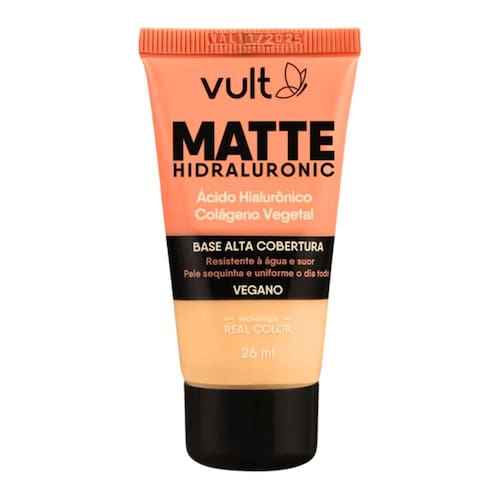 Vult Base Alta Cobertura Vegano Matte Hidraluronic V150 26ml A Base Alta Cobertura Vegano Matte Hidraluronic V150 da Vult é ideal para quem busca uma pele uniforme e sequinha ao longo do dia. Com uma fórmula enriquecida com Ácido Hialurônico e Colágeno Vegetal, essa base oferece alta cobertura e um acabamento fosco impecável, ao mesmo tempo em que hidrata e cuida da pele. O resultado é uma pele bonita e aveludada, sem brilho excessivo. Indicada para quem prefere produtos veganos, a Base Matte Hidraluronic proporciona uma aparência natural e duradoura, deixando a pele com um acabamento suave e uniforme o dia todo. A combinação de Ácido Hialurônico e Colágeno Vegetal também ajuda a melhorar a elasticidade da pele, proporcionando um cuidado extra enquanto disfarça imperfeições. Modo de uso: Aplique a base no rosto e pescoço com a ponta dos dedos ou utilize um pincel para um efeito mais intenso e uma cobertura ainda mais precisa. Marca: Não Informado