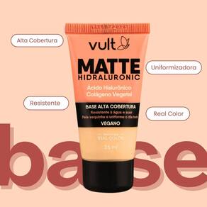 Vult Base Alta Cobertura Vegano Matte Hidraluronic V170 26ml A Base Alta Cobertura Vegano Matte Hidraluronic V170 da Vult é ideal para quem busca uma pele uniforme e sequinha ao longo do dia. Com uma fórmula enriquecida com Ácido Hialurônico e Colágeno Vegetal, essa base oferece alta cobertura e um acabamento fosco impecável, ao mesmo tempo em que hidrata e cuida da pele. O resultado é uma pele bonita e aveludada, sem brilho excessivo. Indicada para quem prefere produtos veganos, a Base Matte Hidraluronic proporciona uma aparência natural e duradoura, deixando a pele com um acabamento suave e uniforme o dia todo. A combinação de Ácido Hialurônico e Colágeno Vegetal também ajuda a melhorar a elasticidade da pele, proporcionando um cuidado extra enquanto disfarça imperfeições. Modo de uso: Aplique a base no rosto e pescoço com a ponta dos dedos ou utilize um pincel para um efeito mais intenso e uma cobertura ainda mais precisa. Marca: Não Informado Ean: 7899852024301