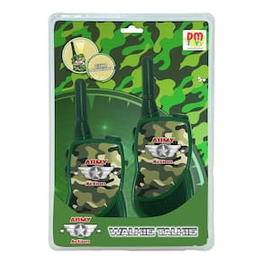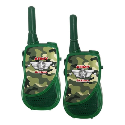 As crianças vão se divertir muito com o Walkie Talkie Army Action, com lanterna para brincar de se comunicar com um amigo. Funciona com ate 100 metros de distância sem obstáculos na frente. Pode sofrer interferências devido a ser um brinquedo.