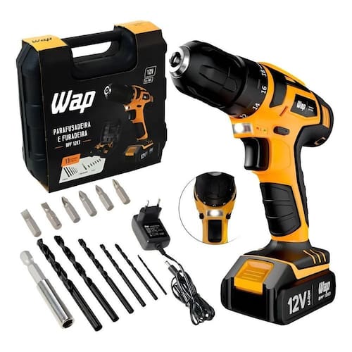 Potência e versatilidade 12v: Perfeita para parafusar e furar em madeira, metal e alvenaria, com 18 níveis de torque para o controle ideal. Liberdade sem fio: Tecnologia lítio-ion para maior durabilidade da bateria e mobilidade total, sem o incômodo de fios. Controle e visibilidade: Led indicador de bateria para saber quando recarregar e luz embutida para iluminar seu trabalho. Praticidade inovadora: Seletor de reverso, mandril de aperto rápido de 10mm e ajuste de velocidade por gatilho para máxima eficiência. Design exclusivo wap: Compacta, leve apenas 1,1kg e ergonômica, garantindo conforto mesmo em longas sessões de uso. Tudo em um só lugar: Inclui maleta completa com acessórios essenciais para que você comece a usar imediatamente.