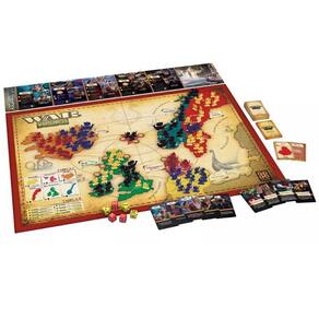 Conteúdo da Embalagem: - 1 Tabuleiro - Tabuleiro Anexo - 2 Regras - 4 Conjuntos de Exércitos com miniaturas - 66 Cartas de Baralho - 6 Dados