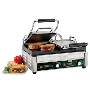 O Waring WFG300T Tostato Ottimo é uma churrasqueira panini profissional que oferece desempenho superior para preparar sanduíches, hambúrgueres, quesadillas e muito mais, com rapidez e perfeição. Equipado com placas duplas de ferro fundido lisas na parte superior e inferior, esta grelha garante distribuição uniforme do calor, resultando em um dourado perfeito e um alimento sempre suculento e bem cozido. Com uma ampla área de cozimento de aproximadamente 43 x 24 cm, você pode grelhar múltiplos itens ao mesmo tempo, aumentando sua produtividade na cozinha.