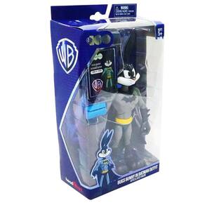 Warner Bros 100 Anos Boneco Pernalonga Batman - FunComemorando os 100 anos da Warner Bros. Chegou o boneco Pernalonga com a capa do Batman. Agora seu personagem favorito do desenho animado vem com as roupas de seu super-herói preferido. Vem com 19 pontos de articulação nas pernas, braços e quadris. São 6 figuras para colecionar (Piu-Piu, Lola, Pernalonga, Tasmânia e Coyote). Vem com Certificado de Autenticidade. Idade: + 5 anos Selo Inmetro: 02115-000