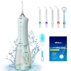 Especificações: 1. Valor direto da fábrica. A WELLLEO oferece irrigadores dentais de água de alta qualidade a preços imbatíveis, direto da fábrica para você. 2. Inovação focada no cliente Ouvimos seus comentários para melhorar constantemente nossos produtos, proporcionando uma experiência melhor sempre. 3. Design inteligente, fácil manutenção Os irrigadores dentais WELLLEO apresentam uma bola gravitacional patenteada para limpeza em ângulo total, uma aderência ergonômica para conforto, tablets de limpeza e uma escova para fácil manutenção e uma poderosa pressão de água de 40 a 140 psi para resultados eficazes. - Forte fluxo de água pulsante, limpeza profunda - recomendado por dentistas: o irrigador bucal de água fornece 1300 pulsos por minuto para remover efetivamente detritos persistentes e partículas de alimentos dos dentes e gengivas. Com cinco modos de limpeza ajustáveis, o fio dental atende às necessidades individuais. Seja para usuários iniciantes, gengivas sensíveis ou para aqueles com aparelhos, passando por ortodontia ou precisando de limpeza periodontal profunda, este é o dispositivo ideal para chuveiro oral endossado por dentistas - Bateria de longa duração - 30 dias de uso: este irrigador dental possui uma bateria recarregável de 2500 mAh que dura até 30 dias com uma única carga, eliminando a necessidade de recarga frequente. Com uma porta de carregamento USB-C e indicador de bateria (adaptador não incluído), o fio dental hidro permite o carregamento fácil usando um carregador de telefone, carregador portátil ou computador. Seu design compacto e potência de longa duração o tornam ideal para viagens e viagens de negócios - Reservatório grande de 300 ml - sem necessidade de recargas frequentes: este irrigador bucal de jato de água possui um reservatório de grande capacidade de 300 ml, fornecendo água suficiente para uma limpeza completa sem a necessidade de recargas frequentes. O reservatório é fácil de retirar para uma limpeza abrangente. Seu design compacto o torna portátil, garantindo que você possa desfrutar de dentes frescos e saudáveis em casa ou em movimento - À prova d'água IPX7 – Seguro para uso no banheiro: o design IPX7 à prova d'água mantém a umidade fora, para que você possa usar facilmente o irrigador bucal dental no banheiro sem se preocupar com respingos danificá-lo. É seguro de usar durante o banho, oferecendo cuidados bucais convenientes. Observação: Sempre feche a tampa à prova d'água na porta de carregamento durante o uso para evitar a entrada de água, garantindo que o fio dental dure mais tempo - Modo de memória inteligente com proteção contra superaquecimento (temporizador de 2 minutos): Este irrigador bucal elétrico se lembra automaticamente da última intensidade do fluxo de água usada e do modo de limpeza, eliminando a necessidade de reajustes e tornando a higiene bucal mais eficiente. O temporizador de 2 minutos garante que você conclua sua limpeza dentro do tempo recomendado para melhores resultados. Se a temperatura exceder os níveis seguros, o sistema de proteção contra superaquecimento cortará a energia para segurança. O irrigador dental pode ser utilizado novamente quando esfriar - Para ocasiões especiais, fácil de usar: este irrigador oral vem com uma garantia de 12 meses e suporte por e-mail 24 horas por dia, 7 dias por semana para garantir a satisfação do usuário. É uma excelente escolha para amigos, familiares e entes queridos, perfeita para ocasiões especiais como aniversários, Natal, Dia de Ação de Graças, Dia dos Namorados, Dia dos Pais ou Dia das Mães. O que você receberá: 1 x irrigador bucal de água, 5 x bocais (substituição recomendada a cada 3 meses), 1 x cabo USB-C e 1 x manual do usuário (sem garantia de versão em português)