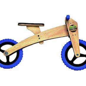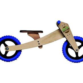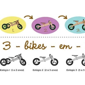 Wb-3 bicicleta de madeira 03 em 01 Feita em compensado naval, proveniente de reflorestamento, com assento em eva, manoplas de borracha, rodas de eva maciço e eixos em alumínio e ferro zincado. é um produto sustentável, que evolui com seu filho, possui giro limitado do guidão para maior segurança e é oferecida pela camará. Dimensões da caixa do produto: 18x70x33cm. Peso 5kg.