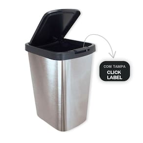 We Drop - Lixeira Cesto 9 Litros Com Tampa Click Label Cinza Inox Lixeira Cesto 09 Litros com Tampa Click Label A lixeira de 09 litros com tampa Click Label pode ser utilizada em qualquer ambiente, seja em casa ou no trabalho. Produto em plástico resistente, revestido com adesivo Prata metalizado, imita Aço inox. Fácil de limpar, não perde o brilho ao higienizar. A tampa é preta assim como o interior da lixeira. A tampa tem sistema de abertura tipo Click Label, basta apertar a parte indicada com Push e acionar o levantamento da tampa. Para fechar é só abaixar até o clique de travamento. ESPECIFICAÇÕES:- Material: Plástico- Dimensões: 31cm altura x 19cm largura x 23cm profundidade- Cor: Prata (tipo Inox)- Peso: Aprox. 350g Contém: 01 Lixeira 09 Litros com tampa Click Label na cor Prata Lixeira Cesto 09 Litros com Tampa Click Label A lixeira de 09 litros com tampa Click Label pode ser utilizada em qualquer ambiente, seja em casa ou no trabalho. Produto em plástico resistente, revestido com adesivo Prata metalizado, imita Aço inox. Fácil de limpar, não perde o brilho ao higienizar. A tampa é preta assim como o interior da lixeira. A tampa tem sistema de abertura tipo Click Label, basta apertar a parte indicada com Push e acionar o levantamento da tampa. Para fechar é só abaixar até o clique de travamento. ESPECIFICAÇÕES:- Material: Plástico- Dimensões: 31cm altura x 19cm largura x 23cm profundidade- Cor: Prata (tipo Inox)- Peso: Aprox. 350g Contém: 01 Lixeira 09 Litros com tampa Click Label na cor Prata