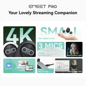 - Excelência visual, inovação revolucionária de câmera dupla – EMEET Piko, a primeira webcam 4K alimentada por IA de câmera dupla do mundo para PC, eleva sua experiência 4K. Sua câmera principal 4K com um sensor de 1/2,8 polegadas oferece visuais ultra-claros, enquanto a câmera assistida por IA garante foco automático rápido e iluminação facial precisa. A Piko se destaca em condições de pouca luz com reconhecimento superior de rosto e fundo, superando os concorrentes e tornando-a a escolha ideal para criadores de conteúdo, profissionais e educadores.