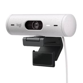 Webcam Logitech Brio 500 Full HD com correção automática de luz, modo show, microfones duplos com redução de ruído, capa de privacidade para webcam, funciona com o Microsoft Teams, Google Meet, Zoom, cabo USB-C - esbranquiçado