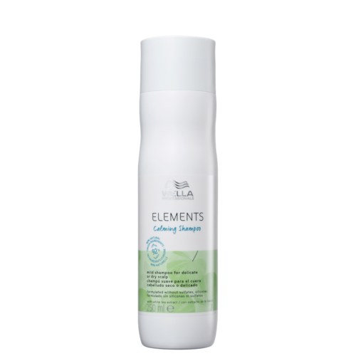 O Shampoo Wella Professionals Elements Calming é formulado com 92% dos ingredientes de origem natural, ajuda a restaurar o conforto do couro cabeludo seco ou sensível. É dermatologicamente testado, sem sulfato e silicones.