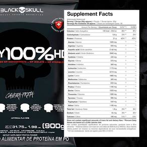 O Whey 100% HD Blackskull USA™ é mais um mega suplemento da linha Caveira Preta Series. Composto por três tipos de Whey Protein (concentrado, isolado e hidrolisado), é uma ótima opção para auxiliar no desenvolvimento muscular. Sua composição conta também com a adição de BCAA (leucina, isoleucina, valina) que são, aminoácidos de cadeia ramificada e contribuem para uma melhor recuperação pós-treino. O Whey Protein é uma proteína do soro do leite, sendo um dos suplementos mais consumidos do mundo atualmente por diversas áreas esportivas e clínicas; garante proteínas de alto valor biológico auxiliando no desenvolvimento e recuperação das fibras musculares tanto em atletas quanto em de praticantes de atividades físicas em geral, até mesmo em pacientes que necessitam de uma dieta enteral.