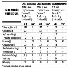 Ingredientes: Blend proteico [proteína de soro do leite concentrada (Whey Protein Concentrate – WPC), proteína de soro do leite isolada (Whey Protein Isolate – WPI) e proteína de soro do leite hidrolisada (Whey Protein Hydrolyzed – WPH)], farinha de amendoim torrado, aroma idêntico ao natural de paçoca, espessante goma xantana, acesulfame de potássio e sucralose.