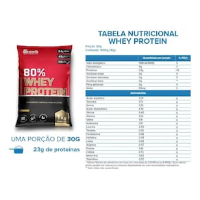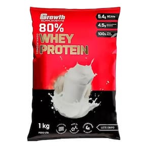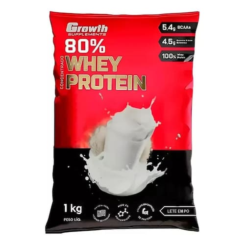 Este produto é referente a um Whey de 1Kg. Está Adquirindo: UMA PORÇÃO DE 30g DO SABOR NATURAL FORNECE: PROTEÍNAS 24g UMA PORÇÃO DE 30g DOS DEMAIS SABORES FORNECE: PROTEÍNAS 23g BENEFÍCIOS DO WHEY PROTEIN Aumento do volume muscular. Ajuda na redução de gorduras. Potencializa a resposta de recuperação do tecido muscular. Combate a inflamação local do tecido muscular. Alta concentração de aminoácidos de cadeia ramificada. Alta concentração de aminoácidos essenciais. Ex: individuo com 70kg de peso 70 X 0,4 = 28gr de whey Esta quantidade pode ser maior, como também pode ser menor, depende de cada caso. Marca: Growth Suplements