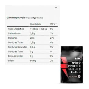Descrição:Whey protein concentrado - dux nutrition lab: é o suplemento ideal para a auxiliar na manutenção e no ganho de massa muscular, proporcionando o suporte que o seu corpo precisa para alcançar uma alta performance. Whey protein concentrado - dux nutrition lab: o whey protein concentrado dux® é composto por proteínas de alto valor biológico e rápida absorção, além de gorduras essenciais, carboidratos e uma ampla gama de aminoácidos, fundamentais para garantir a síntese muscular acelerada após a prática de esportes.É ideal para ser consumido antes e depois de treinos, mas também pode fazer parte do café da manhã ou servir como um lanche entre as refeições, e em outros momentos conforme a orientação do seu nutricionista. Benefícios:- 22g de proteínas- 4,7 g de bcaas;- 2,2 g de leucina;- 3,5g de carboidratos;- 2,6g de gorduras totais. Sugestão de uso:Fornecedor recomenda misturar cada medida em 250-350ml de aguá e misturar.Este produto é dispensado de registro na Anvisa de acordo com a RDC número 27 de 2010.