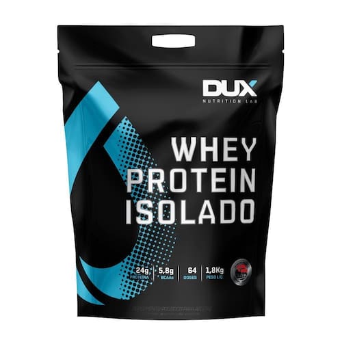 Whey Protein Isolado Chocolate (1.8kg) - Dux Nutrition A linha de proteínas DUX foi desenvolvida por especialistas e formulada com matérias-primas importadas para oferecer um produto de qualidade, pureza e resultado a atletas de todos os esportes. Com um perfil nutricional completo e excelente sabor, é o suplemento ideal para a auxiliar na manutenção e no ganho de massa muscular, proporcionando o suporte que o seu corpo precisa para alcançar uma alta performance. Whey Protein Isolado DUX O Whey Protein Isolado DUX possui alta concentração de proteínas de elevada pureza, com baixíssimos índices de gordura, carboidratos e lactose. É um suplemento rico em BCAA e outros aminoácidos e ideal para atletas que buscam definição e tônus muscular. Deve ser consumido no antes ou depois dos treinos, ao acordar, entre as refeições ou conforme a orientação de seu nutricionista. O Whey Protein Isolado DUX oferece a você: - 24g de proteína isolada do soro do leite duplamente filtrada - 1,9g de Carboidratos - 1,5g de gorduras totais - 11,2 g de Aminoácidos Essenciais - 5,8g de BCAAs - 2,6g de Leucina Produto isento de registro conforme RDC 27/2010