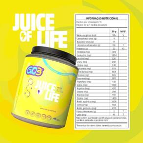 O Juice of Life da GO3 é uma opção prática e refrescante para quem busca incluir proteína na rotina diária de forma leve e saborosa. Com whey protein na composição, oferece 22g de proteína por porção, além de 5g de BCAA e 4,1g de glutamina, contribuindo para complementar a alimentação de forma equilibrada. É a dose de proteína ideal e prática para quem tem uma rotina cronometrada e dificuldade em manter um bom consumo de proteínas ao longo do dia, atletas e esportistas de alta performance e esportistas de alta performance, para quem busca incrementar receitas saudáveis no dia-a-dia e ganhar qualidade de vida.