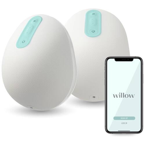 Pump Features 360 Mobility Gravity defying latch lets you pump in any position. Two Ways to Pump Pump into reusable containers or spill proof, self sealing bags. Smart Pumping Control your pump and track production in real time with the app. Two Parts to Clean Wash by hand or pop in the dishwasher. With a patented suction seal pumping rhythm designed around how a baby nurses, you get more mobility no leaks compared to competitors We set out to deliver what pumping moms want most, freedom. After 60 prototypes, the first and only fully mobile wearable breast pump was born Smart Pump Connects with the Willow App to provide real time volume tracking and session history. Smart Features Include Smart Sensors detect let down and automatically switch the pump from stimulation to expression Smart suction technology adjusts based on your suction preference to help you get more milk Willows Flextube creates continuous latch for ultimate leak proof pumping Only 2 parts to clean Battery lasts for 5 sessions with a full charge enough to get through the workday. How to Measure for the Willow Wearable Breast Pump Stimulate Nipple Stimulate your nipple so it perks up. Use Ruler or a Measuring App Place the bottom of the nipple to rest perpendicular to the measuring device. Measure Nipple Line up with the outer edge of your nipple, where it meets the areola. Determine your size Willow recommends you select a flange that is 2 4mm larger than your nipple measurement. Use size chart for guidance on proper size for best fit. What does ultimate mobility look like With Willow you get 360 of freedom when pumping into self sealing bags 190 when using reusable containers Willow Size 15mm Willow Size 17mm Willow Size 19mm Willow Size 21mm Willow Size 24mm Willow Size 27mm Nipple Measurement 11 13 15mm 15 17mm 17 19mm 20 22mm 23 25mm Whats Included Pump Kit 2 Willow Pumps, 2 24mm Flanges, 2 Flextubes, 24 Milk Bags, 2 Cleaning Brushes, 1 Charger Additional Accessories Included 15mm sizing inserts 17mm sizing inserts 19mm sizing inserts 21mm flange 27mm flange Compatible with Willow App FAQ What sizes are available Willow offers Flanges and Milk Containers in size 21mm, 24mm 27mm. 11mm 17mm nipple size, we recommend the Willow Inserts with the 24mm Flange or Milk Container for the best pumping experience. Do I need a special bra for Willow We recommend wearing Willow with a full coverage nursing bra thats stretchy and has a flap. Avoid underwire and padded bras. Does Willow work with larger breast sizes Yes. Willow was designed to work with larger breast sizes including G and H bra cups. Can I return Willow if it doesnt work for me Breast pumps and accessories are regulated as single user product and cannot be returned once the safety seal has been broken. The Willow breakthrough technology is unlike any other pump on the market. If you are having any problems, take advantage of our complimentary 11 coaching from our all mom team of experts. How do I get started Download the free Willow app for step by step onboarding and simple, fast pairing