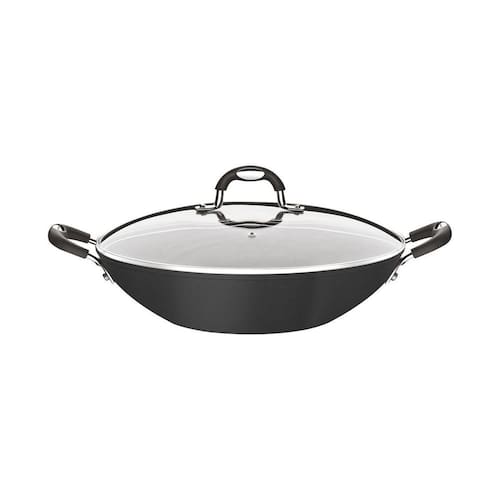 Wok Tramontina Mônaco Induction em Alumínio com Revestimento Interno e Externo Antiaderente Starflon Premium Preto Descrição: Preparar refeições especiais para toda a sua família ficou ainda mais prático e funcional com a Wok Tramontina Mônaco Induction em Alumínio com Revestimento Interno e Externo Antiaderente Starflon Premium Preto com Tampa de Vidro 32 cm de diâmetro 4,5 L Ela é produzida com corpo de alumínio com espessura especial que proporciona cozimento rápido e uniforme dos alimentos e com revestimento antiaderente Starflon Premium, e é a escolha perfeita para preparar as refeições do dia a dia, pois os alimentos não grudam em sua superfície e por não ser prejudicial a sua saúde. Sua tampa de vidro temperado com bordas em aço inox auxilia e facilita a visualização dos alimentos durante o preparo. Seu cabo metálico possui proteção de silicone e proporciona redução da propagação de calor, aumentando a segurança e deixando seu manuseio muito mais confortável. Além disso, ela ainda é fácil de limpar e pode ir à máquina de lavar louças Contém: 1 Wok Mônaco Induction Prezado Cliente: Temos todos os produtos dessa linha com excelentes valores. A cor do produto é exatamente a mesma que consta na foto do anúncio. após a confirmação da Compra. Permanecendo dúvidas estamos à disposição Ótimas Compras Importante: Corpo de alumínio com espessura de 3,0 mm que proporciona cozimento rápido e uniforme. Revestimento interno e externo de antiaderente Starflon Premium que não gruda, é fácil de limpar, mais durável e não é prejudicial a saúde. Tampa de vidro temperado com borda de aço inox e saída de vapor. Alças e pegadores metálicos com proteção de silicone que proporciona redução da propagação de calor, aumentando a segurança e melhorando a empunhadura. Podem ir à máquina de lavar louças facilitando seu dia a dia. A capacidade volumétrica máxima para cozimento é de 3/4 da capacidade total da peça. Posicione os cabos dos utensílios voltados ao centro do fogão. Em fogões com grade, centralize a peça e alinhe o cabo com a grade. Utensílios quentes devem estar fora do alcance das crianças. Este produto não pode sofrer modificações. Antes do primeiro uso, lave com esponja macia, sabão neutro ou detergente líquido. Depois de secar, unte a área interna com óleo ou gordura e leve ao fogo por um ou dois minutos. Deixe esfriar e lave novamente. Seu utensílio Starflon está pronto para uso com ou sem gordura, sempre em fogo baixo ou médio nunca superior a 350ºC . Para mexer os alimentos use somente utensílios de silicone, nylon ou madeira. Evite a imersão do utensílio quente em água fria. Nunca utilize produtos abrasivos na lavagem. Se deixar queimar alimentos, umedeça a área e até que possa remover os resíduos grudados com esponja e sabão. Para descarte dos produtos e embalagens siga as orientações de reciclagem vigentes. Este produto não necessita de manutenção, apenas limpeza. EAN13: 7891112280021 DUN14: 17891112280028 NCM: 7615.10.00 Peso Líquido: 2,0800 kg. Peso Bruto: 2,4000 kg. Metragem: 0,014987 m³. Dimensões Embalagem Compr. X Larg. X Alt. : 438x 329x 104 mm. Dimensões Produto Compr. X Larg. X Alt. : 436x 331x 172 mm. Diâmetro: 32,0 cm. Capacidade: 4,50 l. Espessura: 3,0 mm. Cor 1: 000000 Hexa