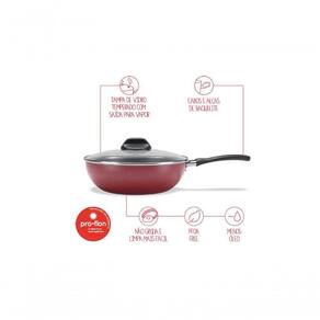 Nome 60 Caracteres - Wok Brinox vermelha 24 cm antiaderente - tampa Linha Garlic