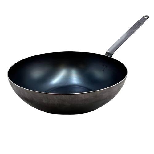de Buyer - Frigideira wok de aço carbono azul com 2 mm de espessura - Acesso - 32 cm de diâmetro, superfície de cozimento de 15 cm - segura para forno - livre de PFAS, PFOA e PFOS - Feito na França