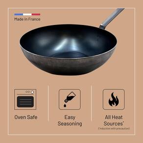 - WOK DE AÇO CARBONO AZUL - Esta wok é ideal para refogados, arroz frito e chow mein, bem como para cozinhar a vapor e fritar todos os tipos de alimentos. É feito de aço carbono azul, uma mistura 100% natural de ferro e carbono.
