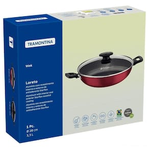 Prepare receitas incríveis e cheias de sabor, com o auxílio da wok Tramontina Loreto em alumínio com revestimento interno e externo em antiaderente Starflon Max grafite 28 centímetros de diâmetro 3,3 litros. Ideal para quem gosta de preparos prático e ágeis, ela tem corpo com 1,8 milímetros de espessura produzido em alumínio. Seu revestimento é em Starflon Max, antiaderente que evita que os alimentos grudem na superfície e a torna muito mais fácil de limpar. A wok ainda vem com tampa de vidro temperado com borda de aço inox e tem alças de baquelite antitérmico e pegador em nylon, que oferecem maior segurança durante o manuseio. Para facilitar suas tarefas na cozinha, ela pode ser levada à máquina de lavar louças. Escolha Tramontina e transforme sua cozinha com apenas um item!